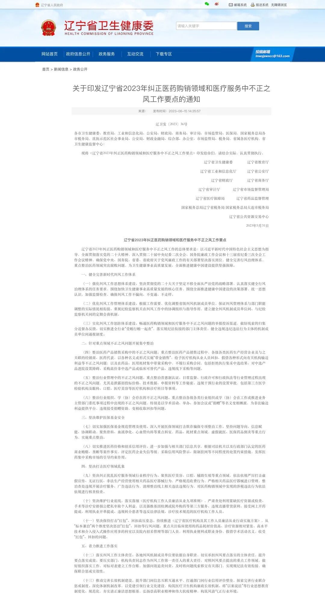 近日,辽宁省卫健委等十三部门发布《关于印发辽宁省2023年纠正医药购销领域和医疗服务中不正之风工作要点的通知》,其中明确,健全完善行风治理体系,重点整治医药领域突出腐败问题(文末附全文)。