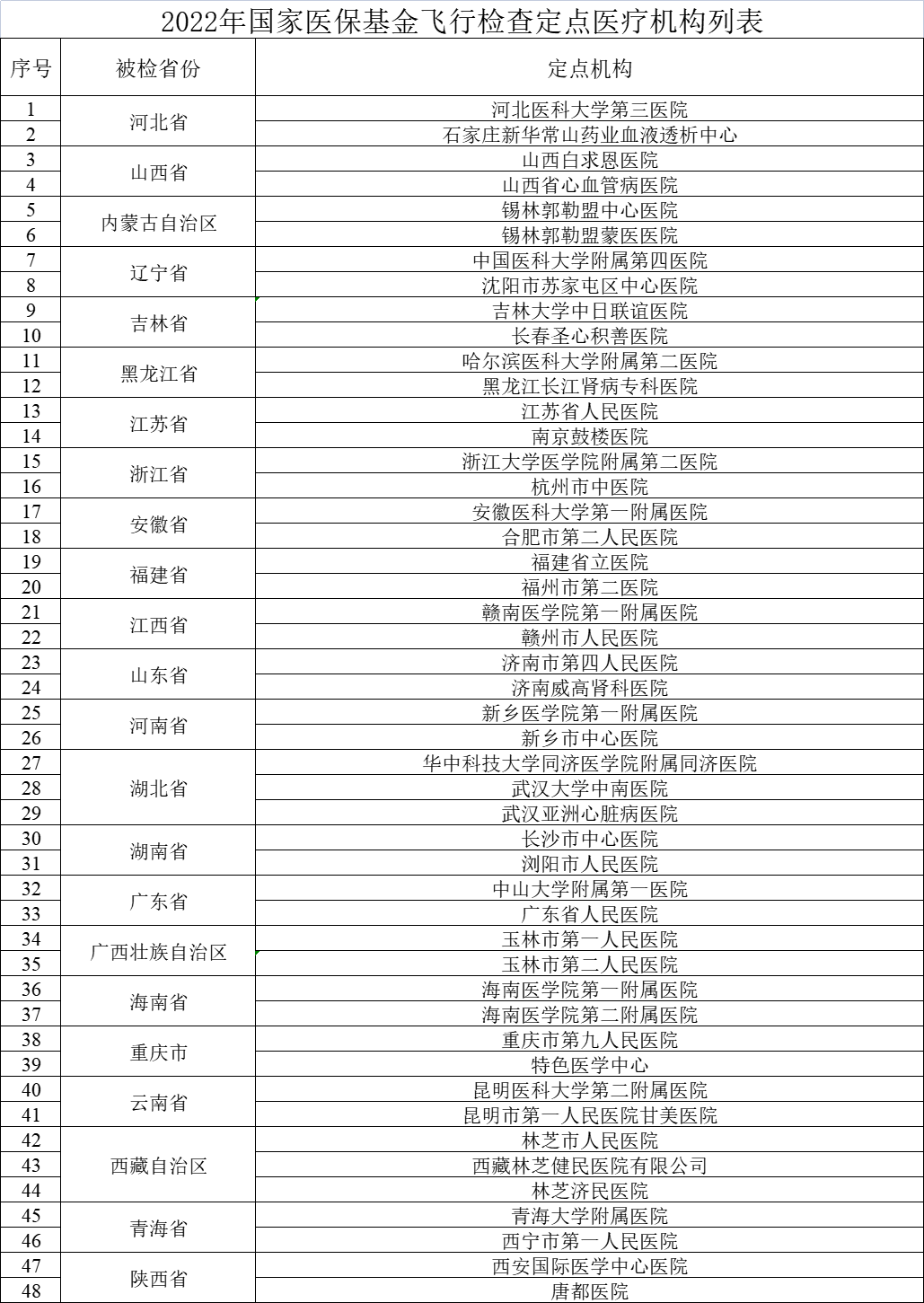 附:2022年国家医保基金飞行检查定点医疗机构列表